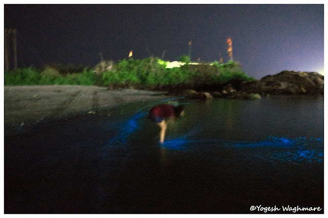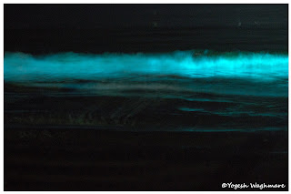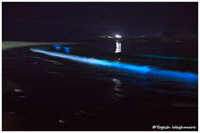 On 27th March 2019 at 12:05 am I came to the beach after my dinner to walk as usual but what I saw at the beach was an unusual thing for me. I saw some glow at waves first I thought it must be a reflection of floodlight but when I observed, the floodlights were white in colour and glow was bluish-greenish in color. For confirmation, I came close to waves and what I saw was like paradise for me. Not just wave currents but whenever I step in water it was glowing and if there was any disturbance in water it starts glowing, it was full greenish-blue glow all over the beach. It was bioluminescence, the first time in life I saw such kind of miracle of nature. Then I called my friends and colleagues at the beach to experience heaven on earth. I know about bioluminescence but I wanted to know more and more about that. I started reading on the internet about that then asking some of my seniors and posting photos of that on social media. When I was searching about this, I didn’t get any record of bioluminescence at Malvan, Maharashtra, India. Local people were saying it comes every year during March-April. So whatever information I got from all the sources, I want to share with you all.